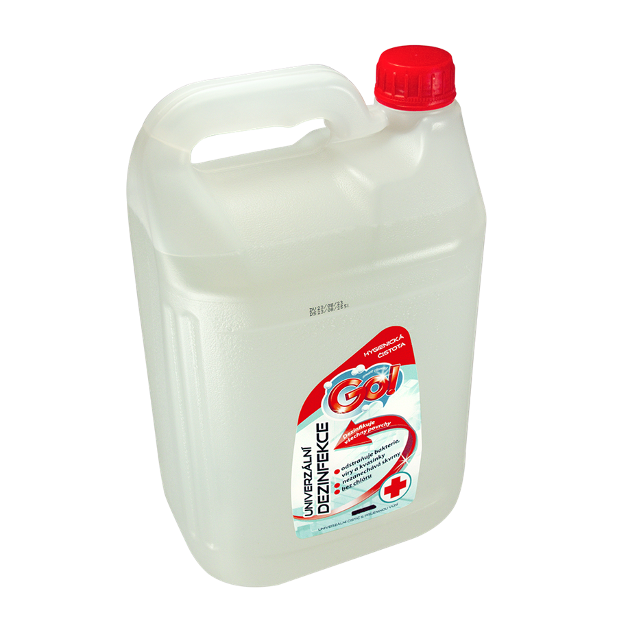 Postřiková dezinfekce GO! 5 l spolehlivě ničí viry, bakterie a kvasinky. Univerzální tekutá dezinfekce povrchů a ploch bez oplachu. Čistí a dezinfikuje všechny materiály a plochy s trojím účinkem - baktericidním, virucidním a protikvasinkovým.