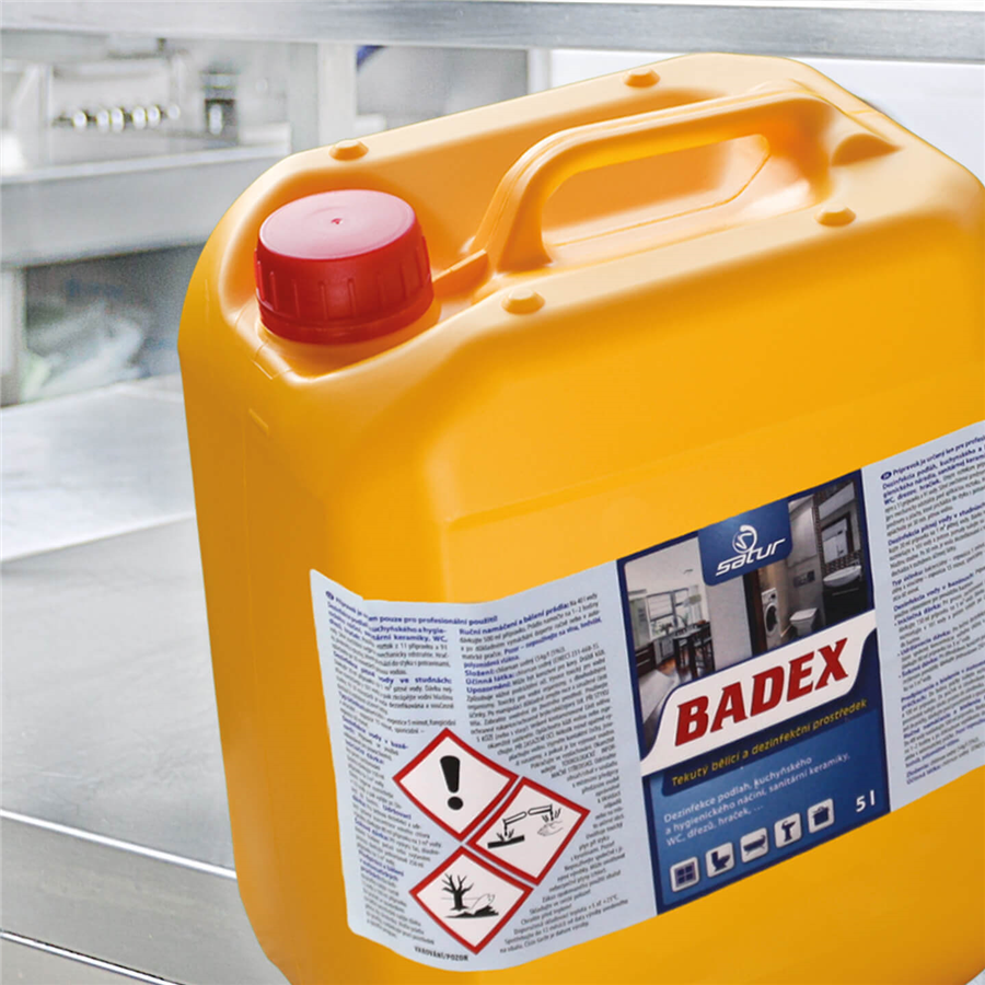 SATUR BADEX je optimální čisticí a dezinfekční prostředek pro použití v maloobchodních prodejnách potravin, masa a uzenin, lahůdek, pečiva, ovoce a zeleniny, restauracích, jídelnách, fast foodech a podobných provozech...