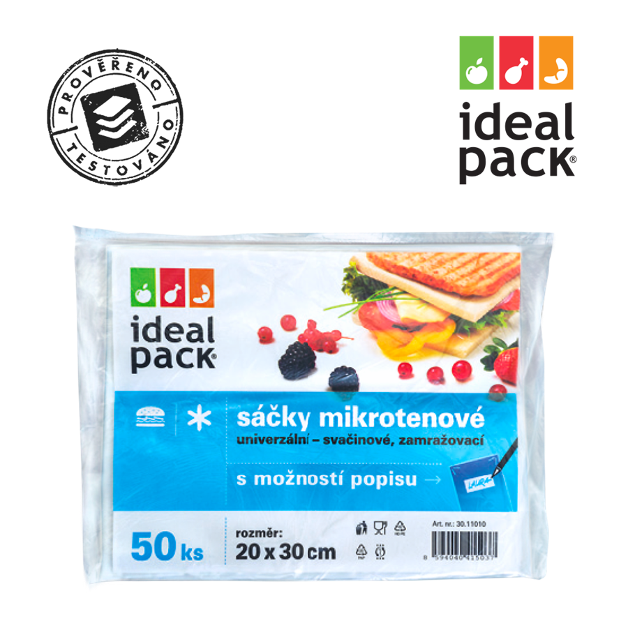 Svačinové a zamrazovací mikrotenové sáčky pro domácnostSvačinové a zamrazovací mikrotenové sáčky ideal pack® 25x35 cm, jsou určené pro prodej v maloobchodních a velkoobchodních prodejnách. Mikrotenové...