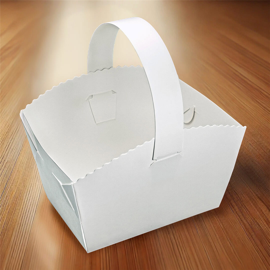 Papírové svatební košíčky s ouškem, jsou určené pro drobnou svatební výslužku,