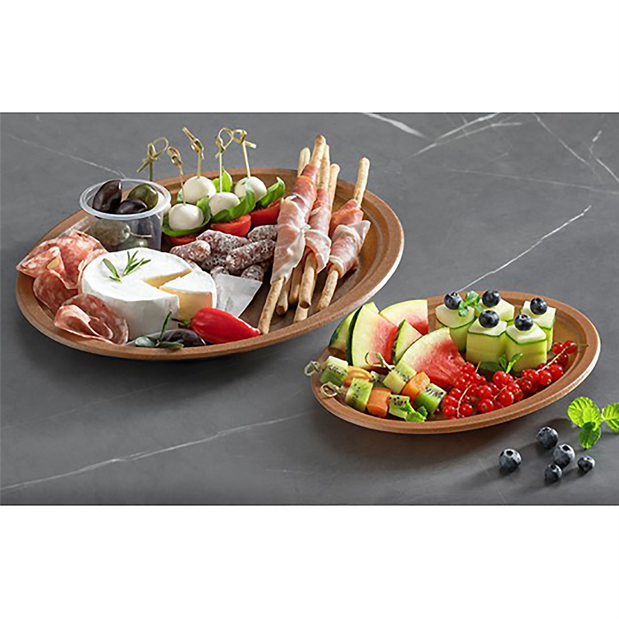 EKO opakovaně použitelné oválné kompozitní talíře dřevo/plast (WPC) 31 cmWPC eko talíře jsou oblíbeným nádobím zejména u prodejců fast food, bister a stánkových prodejců. Nejčastěji prodejci občerstve...