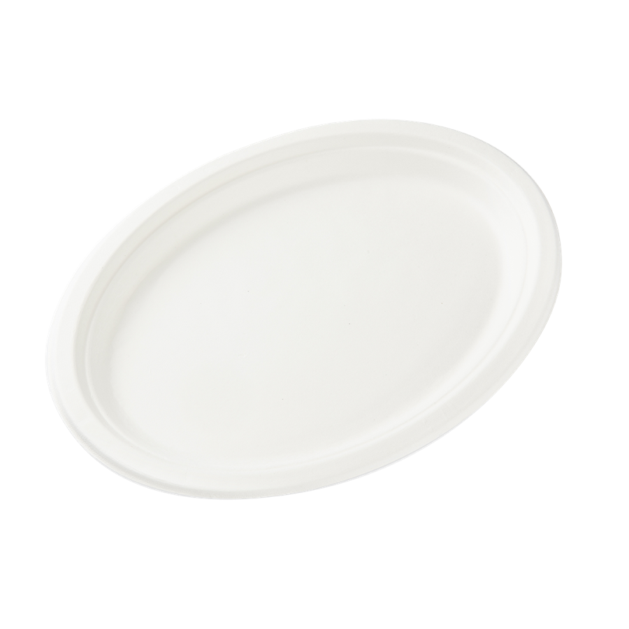 Talíře z cukrové třtiny Talíř z cukrové třtiny 26 cm oválný bílý je určený pro široké spektrum využití.Používání těchto třtinových talířů je ekologické řešení pro pekárny, kavárny, fast food a take aw...