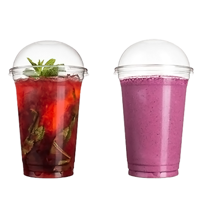 Vypouklé rPET víčko na rPET kelímek bez otvoru