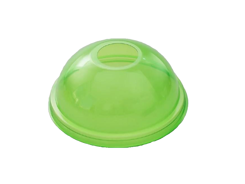 Vypouklé rPET zelené víčko na rPET kelímek s otvorem