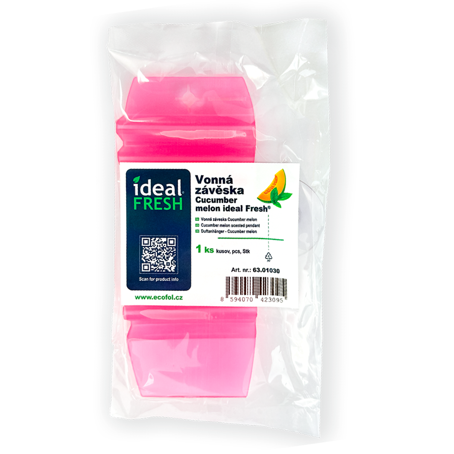 Hang tag vonná závěska Cucumber Melon ideal Fresh je praktický a efektivní osvěžovač vzduchu, který přináší dlouhotrvající vůni okurky a melounu. Díky inovativní technologii postupného uvolňování parfemace dokáže tato závěska provonět různé prostory až na 30 dní. Je ideální pro domácnosti, toalety, šatny, kanceláře, vstupní haly, automobily, restaurace a další interiéry, kde je třeba eliminovat nepříjemné pachy. Díky univerzálnímu tvaru ji lze snadno zavěsit na háček, trubku nebo umístit na rovný povrch.