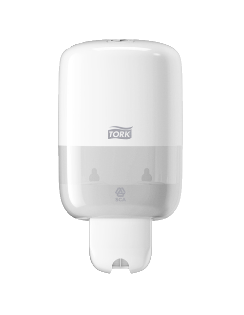V balení je 1 kus mini zásobníku na tekuté mýdlo TORK.