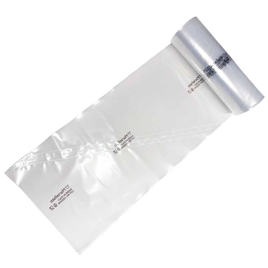 Kromě toho je sáček dodáván v praktické roli, kterou jednoduše uložíte a podle potřeby z ní odvinete a odtrhnete jednotlivý sáček na zdobení. Zbytek zůstává čistý a úhledně srovnaný, což šetří místo i čas. Takové balení ocení především cukrárny a gastronomické provozy s vysokou spotřebou.